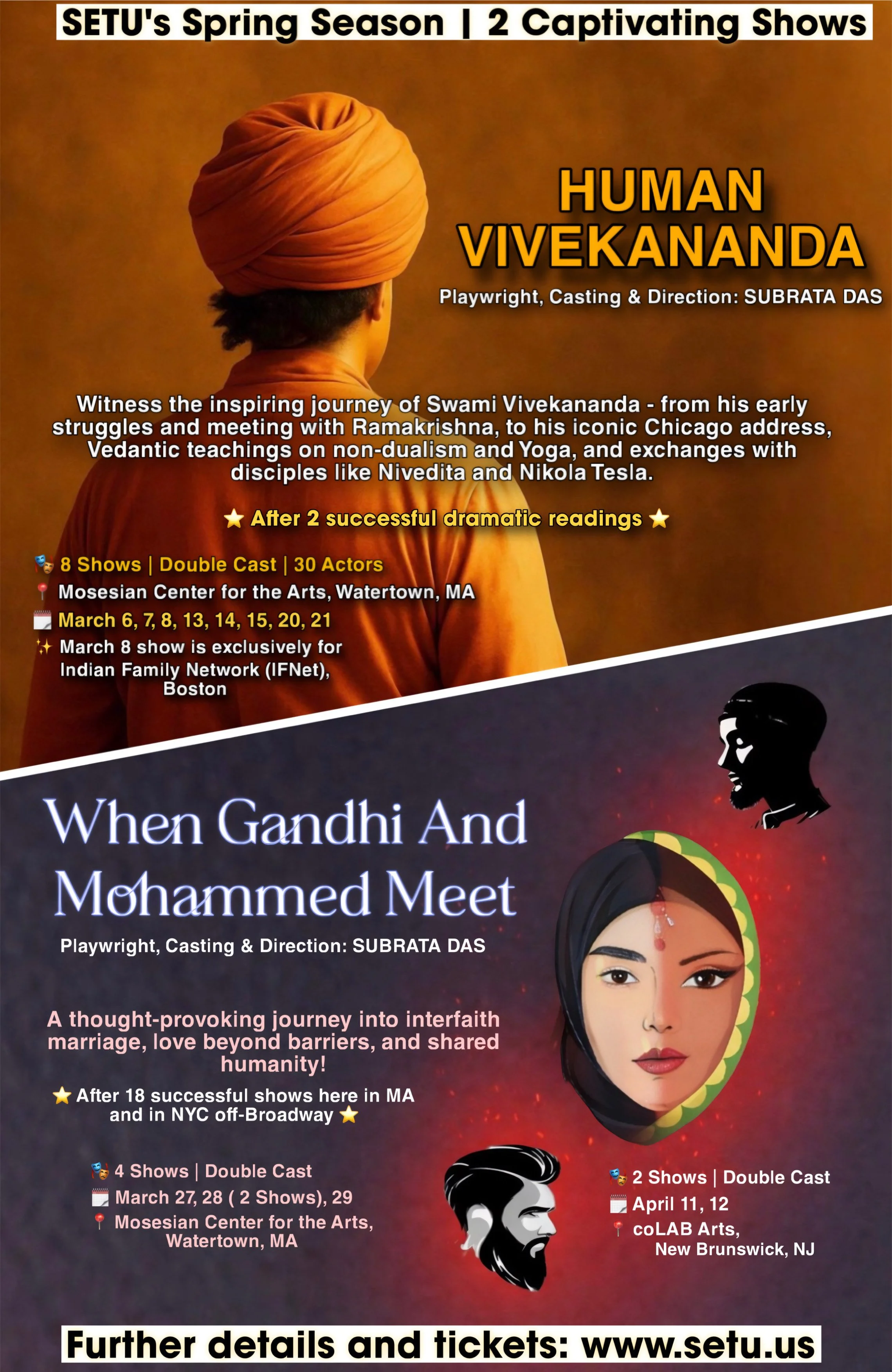 SETU is a 501(c)(3) non-profit theater group in the Boston area since 2003. SETU means “bridge” in several Indian languages and our mission is to build bridges between Indian and Western cultures through the medium of theater.